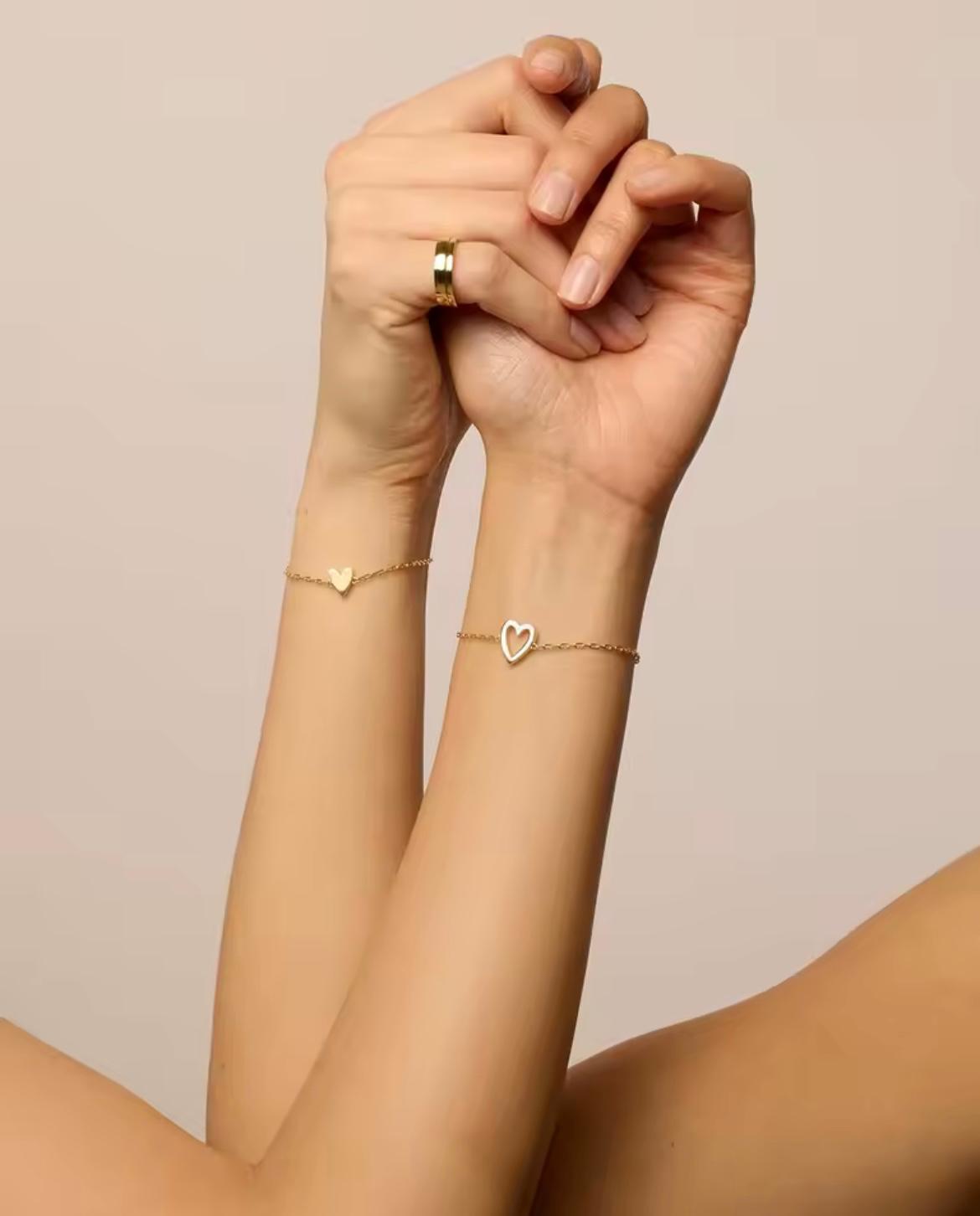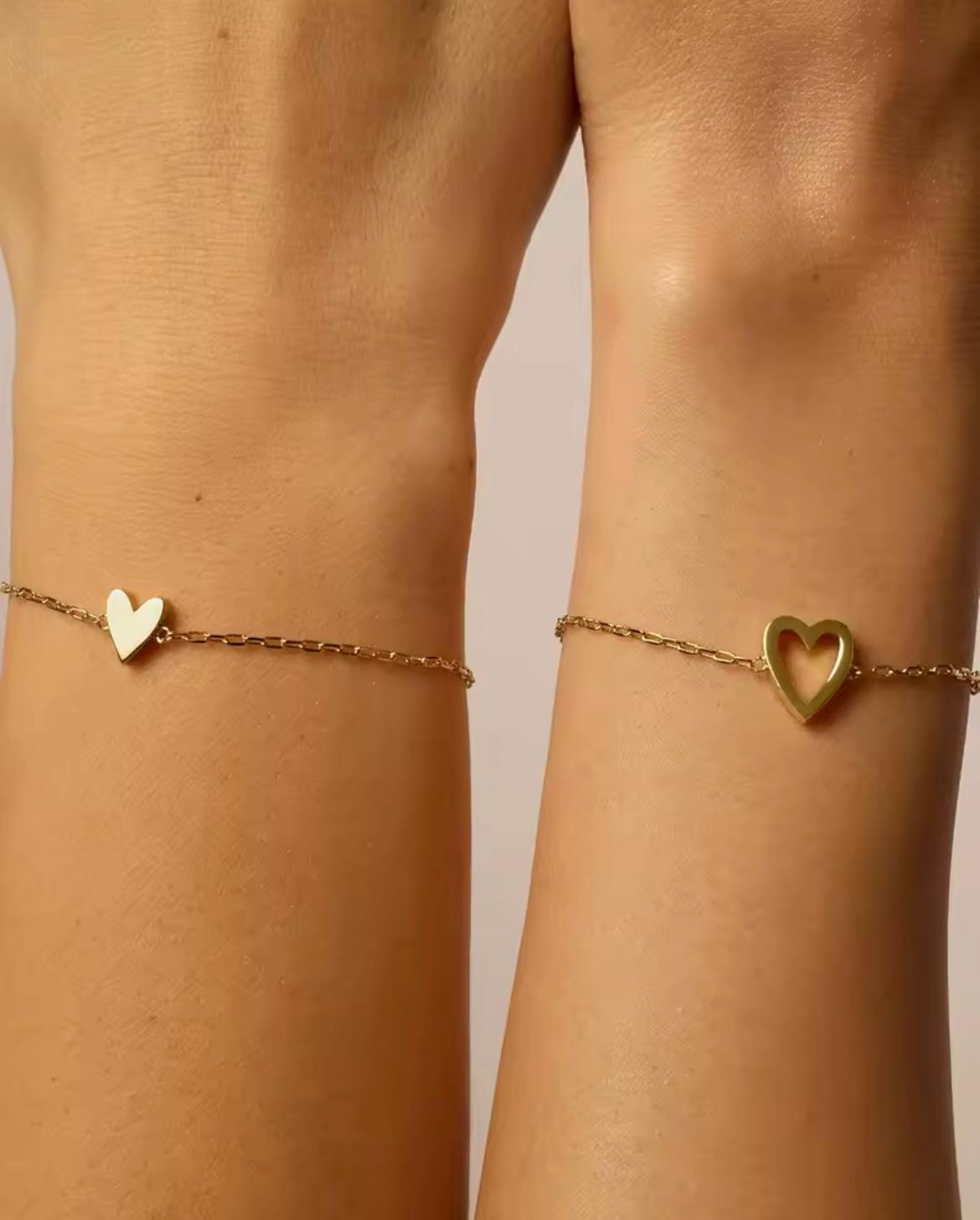 Design elegante e minimal: due cuori, uno pieno e uno aperto, che si abbinano perfettamente per uno stile discreto ma sofisticato.